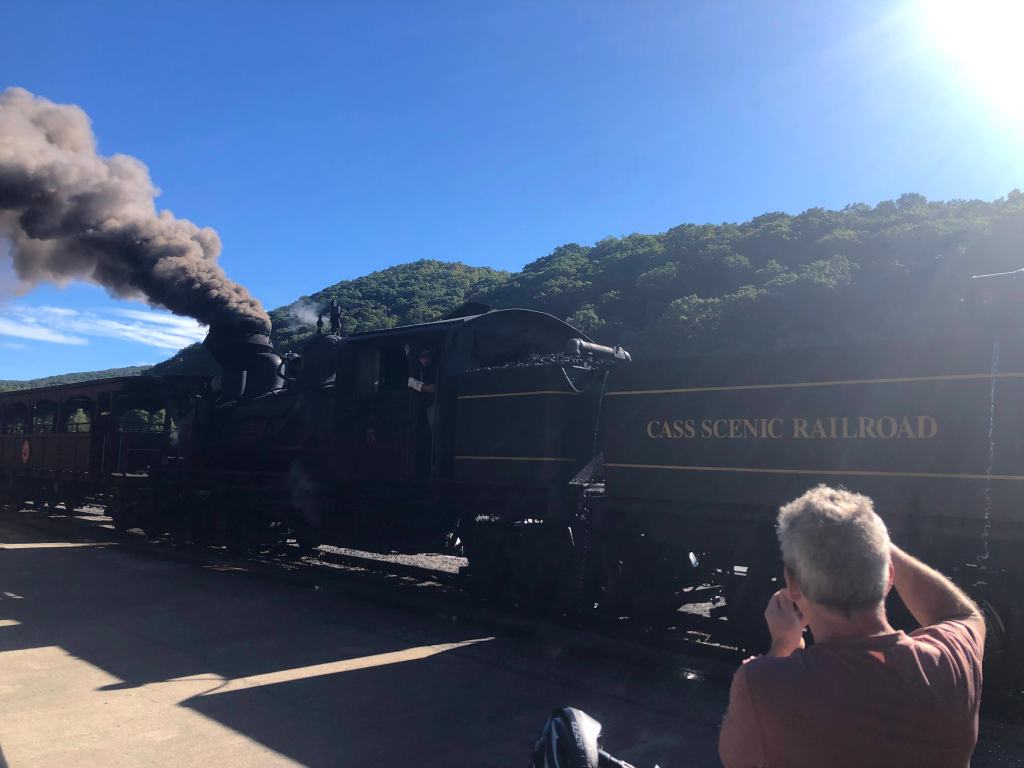 The next morning, we biked back into Cass for a hardy breakfast, and then boarded a Shay steam-powered historic 9-car passenger train that heaved us up to Bald Knob, the 3rd highest point of West Virginia. The tour guide/historian bleating over the speakers in the open-air train car framed the industrialists who began arriving in the late 19th century as hero types – hard-working businessmen who brought civility and commerce to an untamed region.